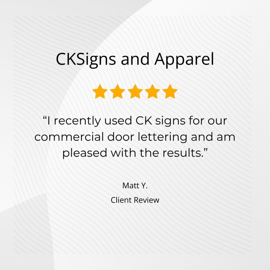 I worked with CK Signs when I needed commercial door lettering for our building. What stood out was their professionalism…