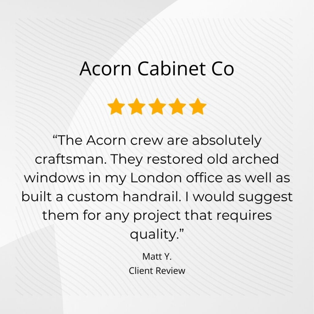I worked with Acorn Cabinet Co to restore old arched windows in my office building, as well as build a…