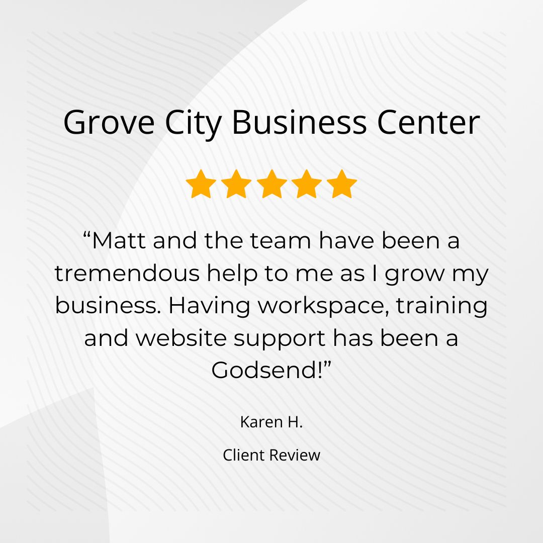 I worked with Karen when she was looking for a business space that would promote growth. Afterward, she said "Matt and the team have been a tremendous help to me as I grow my business. Having workspace, training and website support has been a Godsend!"