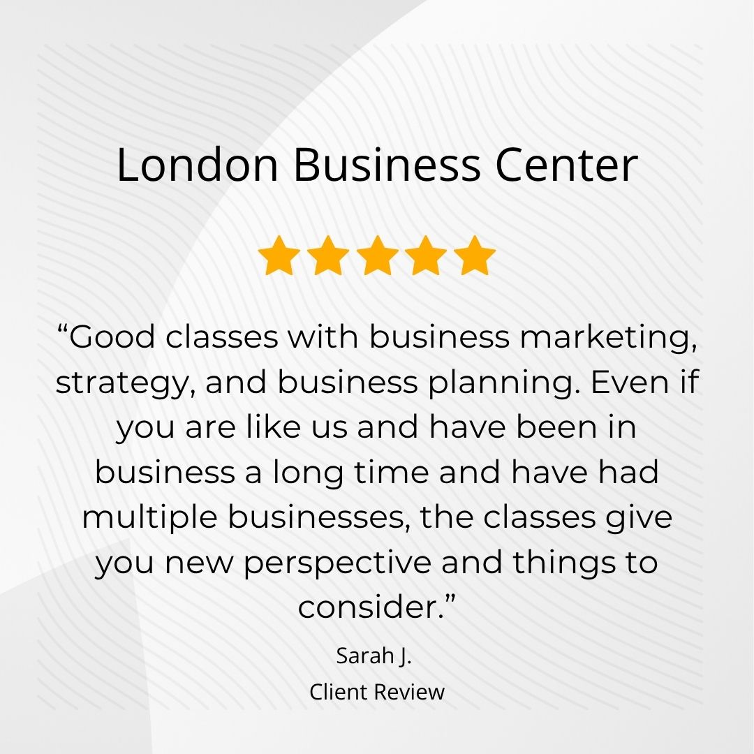 I worked with Sarah when she reached out for business classes and planning. Afterward, she shared "Good classes with business marketing, strategy, and business planning. Even if you are like us and have been in business a long time and have had multiple businesses, the classes give you new perspective and things to consider."