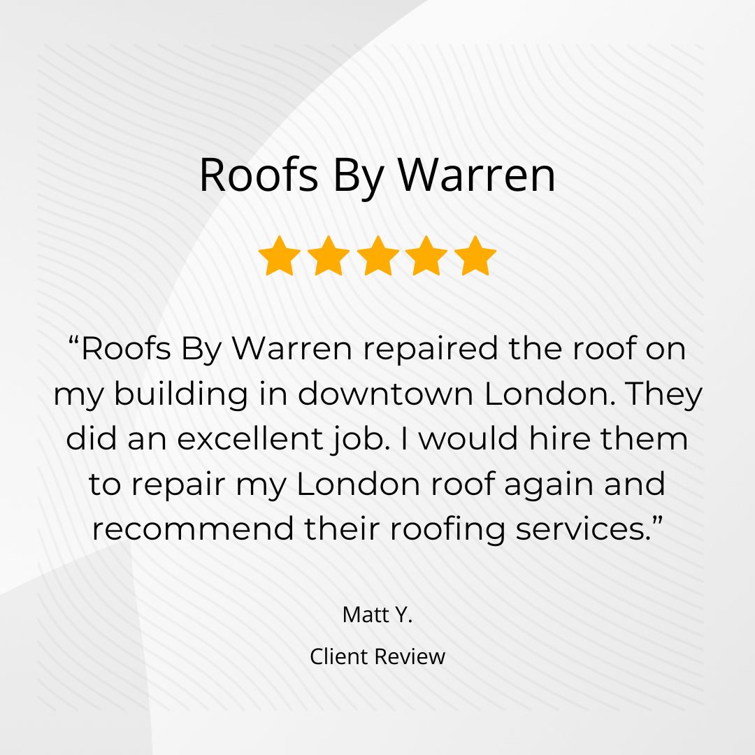 I worked with Roofs By Warren when the roof of one of my buildings needed a repair. What stood out was they were organized, timely, and high-quality, which is why I'd recommend them to anyone who needs roofing services.